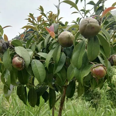 油茶又称普通油茶、白花油茶、茶果树、茶油树,为常绿灌木或小乔木,高3~5m,少数至8m。树干黄褐色,嫩枝被毛,1年生新梢灰褐色,或棕褐色,被淡褐色或灰白色短毛。单叶互生,革质,光滑,柄短。椭圆形或卵状椭圆形,先端渐尖或急尖,长4~10cm,宽2.0~5.0cm,边缘个细锯齿,叶表面绿色有光泽,背面黄绿色,侧脉不明显,萼片圆形,外被丝毛。花两性,白色,单瓣,5~7片,1~3朵顶生或腋生,无柄。雄蕊2~4朵轮排列;子房被毛,柱头3~5裂。10月中、下旬开花,亦为果实成熟期,因此,花果同树,俗称:"抱子怀胎"。果为蒴果,有圆球形、桃形、橄榄形、扁圆形(桔形)、倒卵形、皱顶形等(见图1-2)。颜色有红、黄、绿等色;果径2~4.5cm。每果有种子1~8粒,少数达12粒。种子黄褐色或黑褐色,具光泽,三棱角卵形。