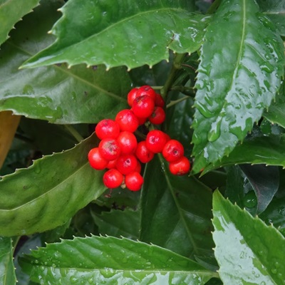 常绿亚灌木。节明显膨大。单叶对生,革质,椭圆形、卵形至卵状披针形,顶端渐尖,基部楔尖,边缘有锐利的粗锯齿,齿的尖端有一球状小腺体,两面无毛,略有光泽;基部合生;托叶小,钻形。夏季开花;花两性,黄绿色,顶生,穗状花序或复穗状花序;苞片三角形;雄蕊1枚,棒状,花丝粗厚,药隔肥大,每边有1药室;子房近球形,几无花柱,柱头头状。核果,红色、球形。